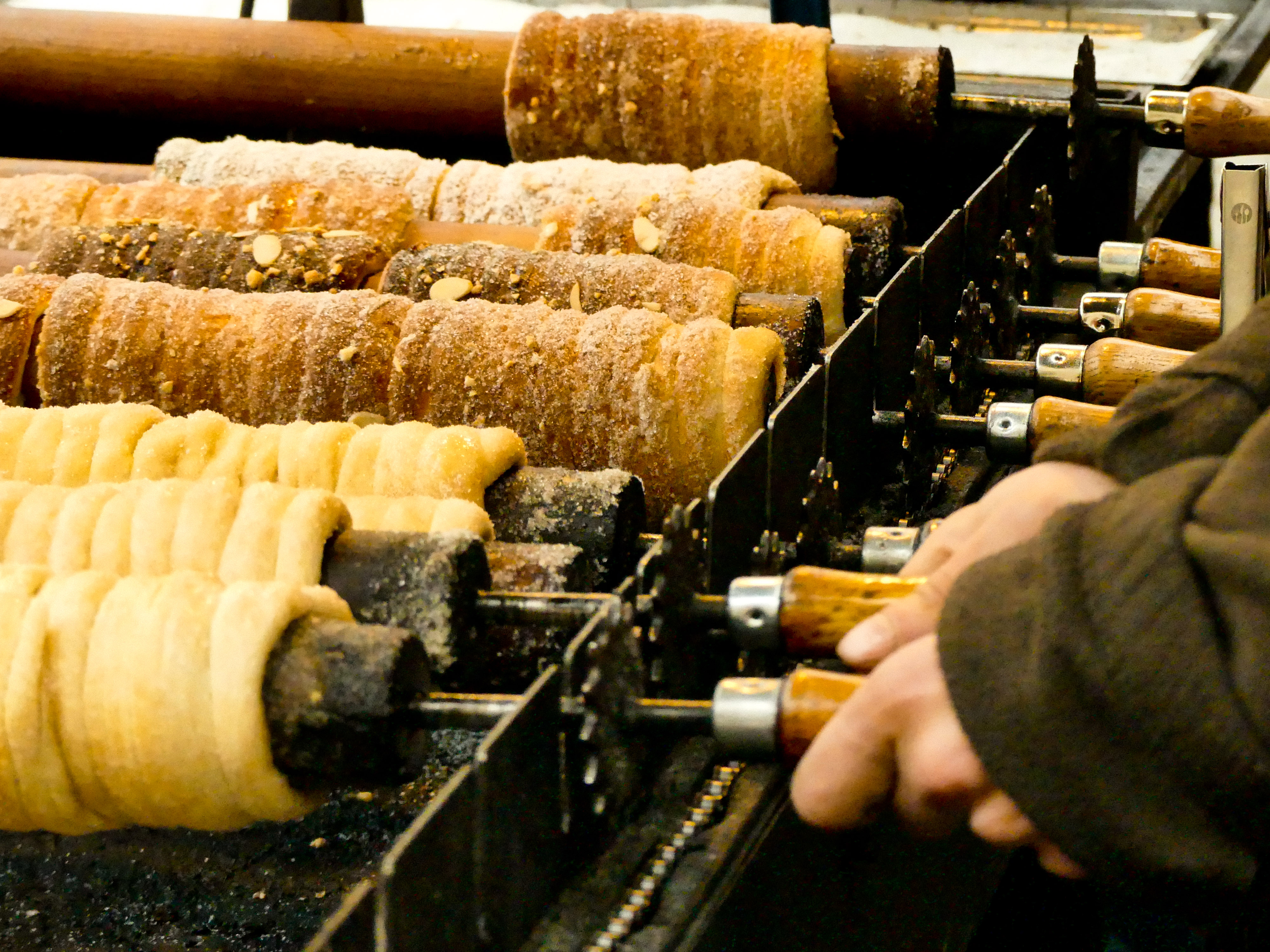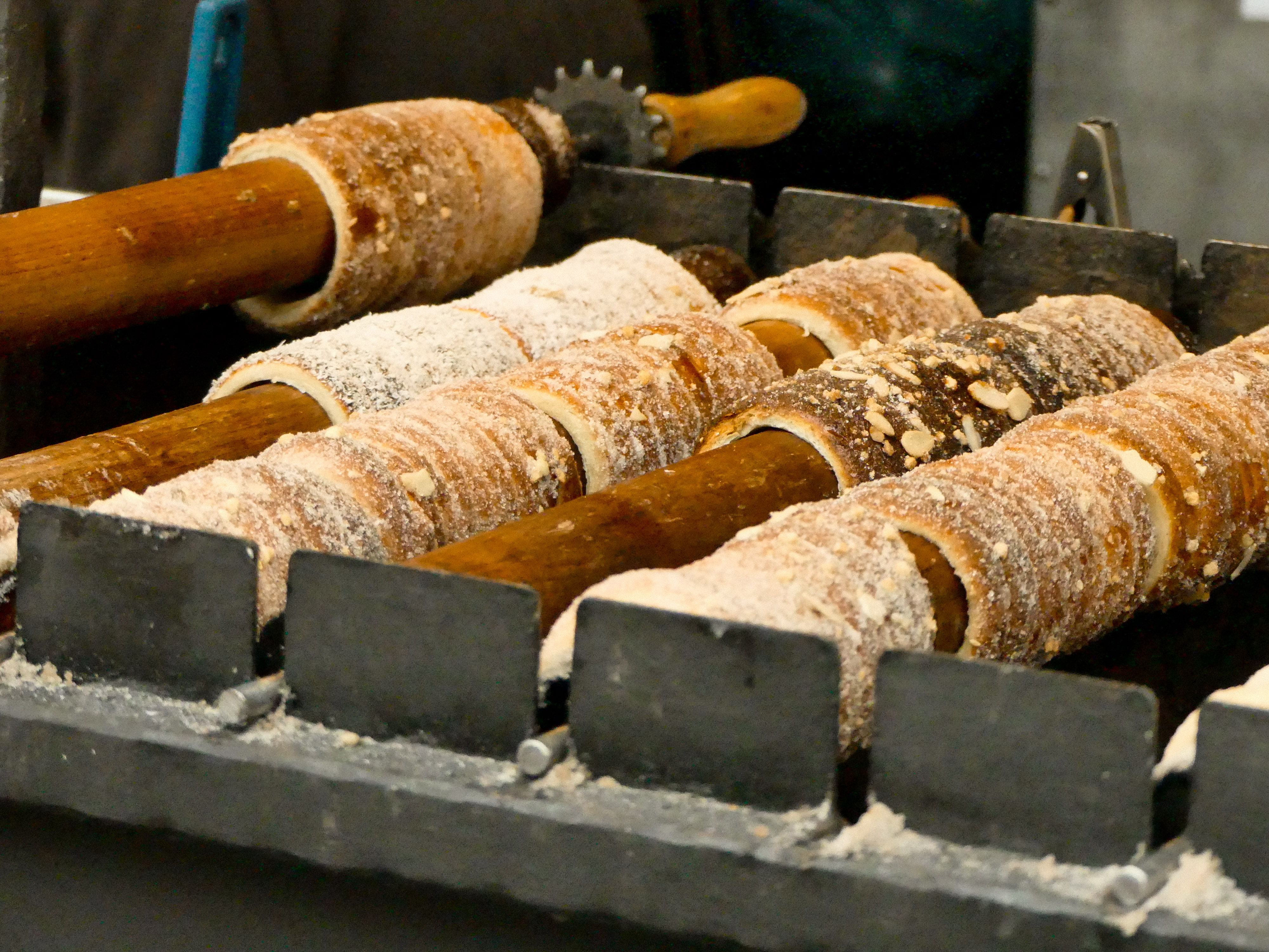 - Goûtez aussi au moins une fois au fameux trdelnik, une pâtisserie traditionnelle en forme de tube cuite à la broche et recouverte de sucre, noisettes & amandes pilées et de cannelle. Il y a plein de petits stands qui en vendent dans le centre-ville, vous ne pouvez pas les louper. Vous pouvez les dégustez nature ou garnis de chocolat, glace ou autre (j’en ai même vu au mac & cheese ou à la saucisse et frites).