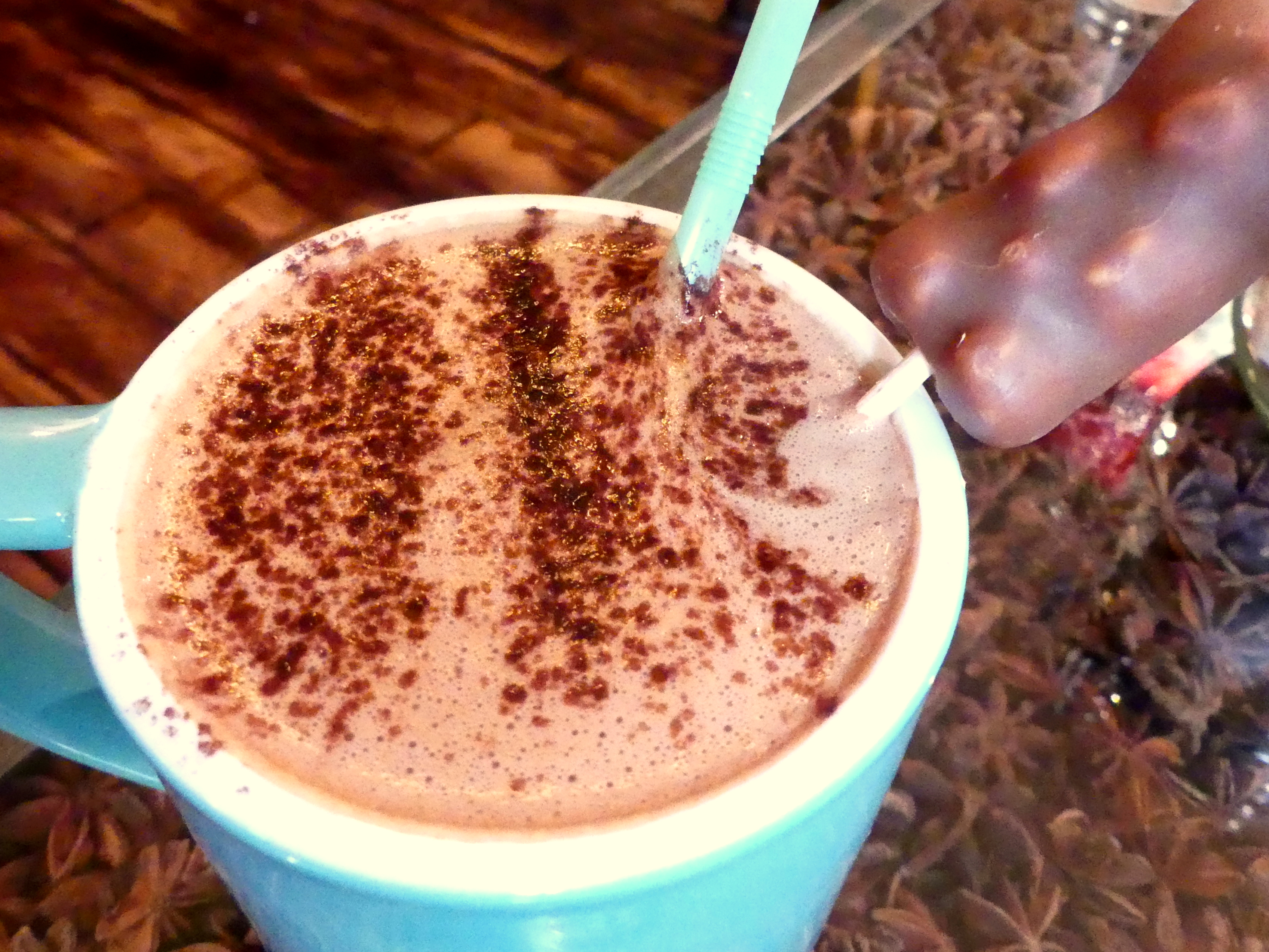 Ensuite, les boissons. Comme tout bon salon de thé, il y a… du thé. La carte est juste impressionnante, avec des thés verts, noirs, blancs, rouges, bleus (oui, ça existe)… natures, fumés, aromatisés. Il y en a vraiment pour tous les goûts. Et si vous n’arrivez pas à choisir, n’hésitez pas à demander au serveur, ils sont de supers conseils. Et le petit plus, si le thé vous a vraiment plu, vous pouvez en acheter pour en rapporter chez vous. Et pour tous ceux qui ne sont pas adeptes du thé, pas d’inquiétudes, vous aurez quand même l’embarras du choix : une quinzaine de chocolats chauds (de différentes origines : Madagascar, Pérou…, aromatisés à la vanille, à la cannelle, à la noisette… au chocolat blanc…), des milk-shakes, des jus de fruits et des cafés de différents crus. Et pour toutes les personnes comme moi qui ne boivent pas de lait de vache, vous pouvez demander du lait de soja. J’ai failli oublier, chaque boisson est servie avec un nounours à la guimauve :D.
