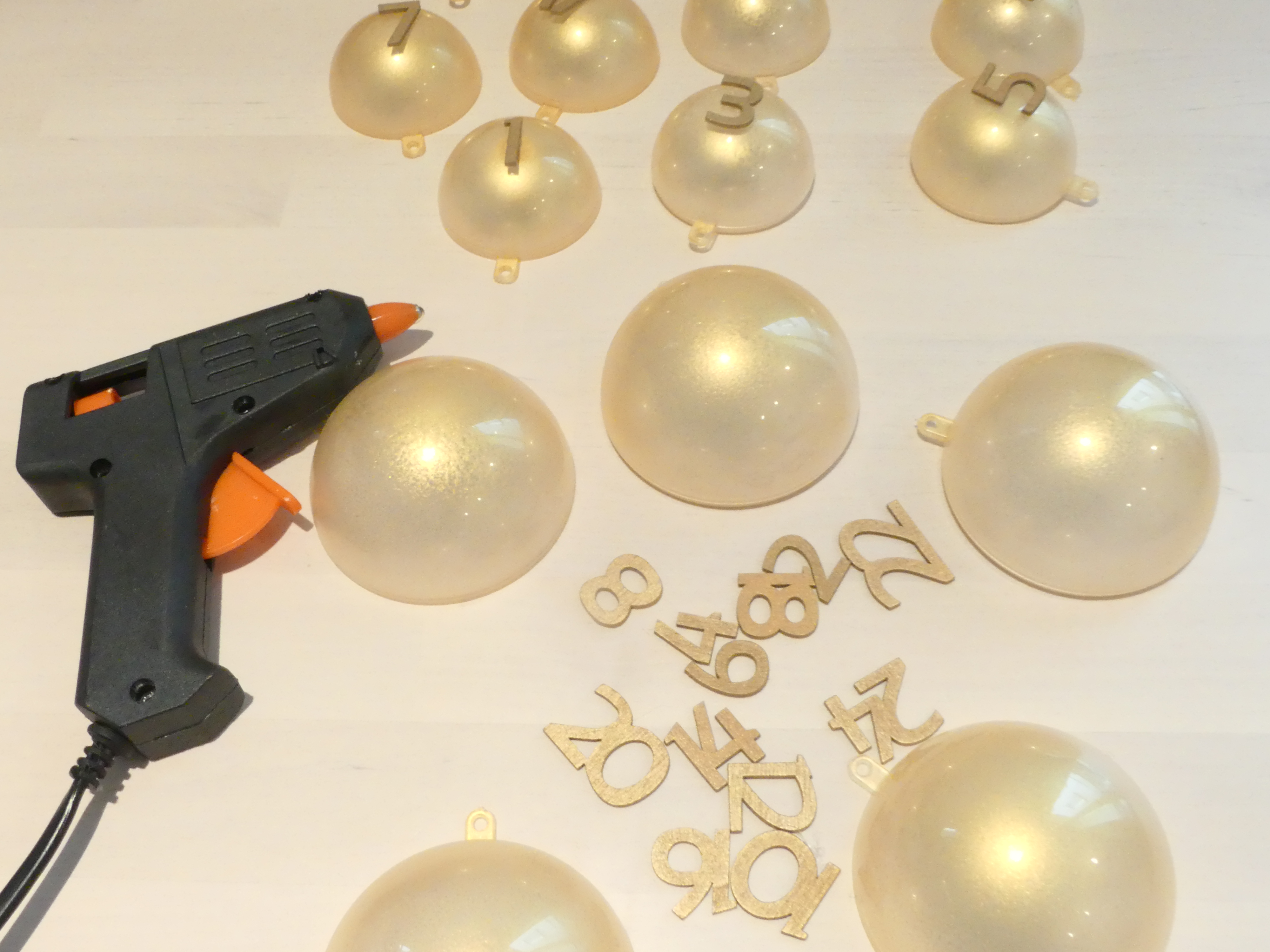 Collez ensuite les numéros en bois sur chaque boule ou écrivez-les au marqueur.