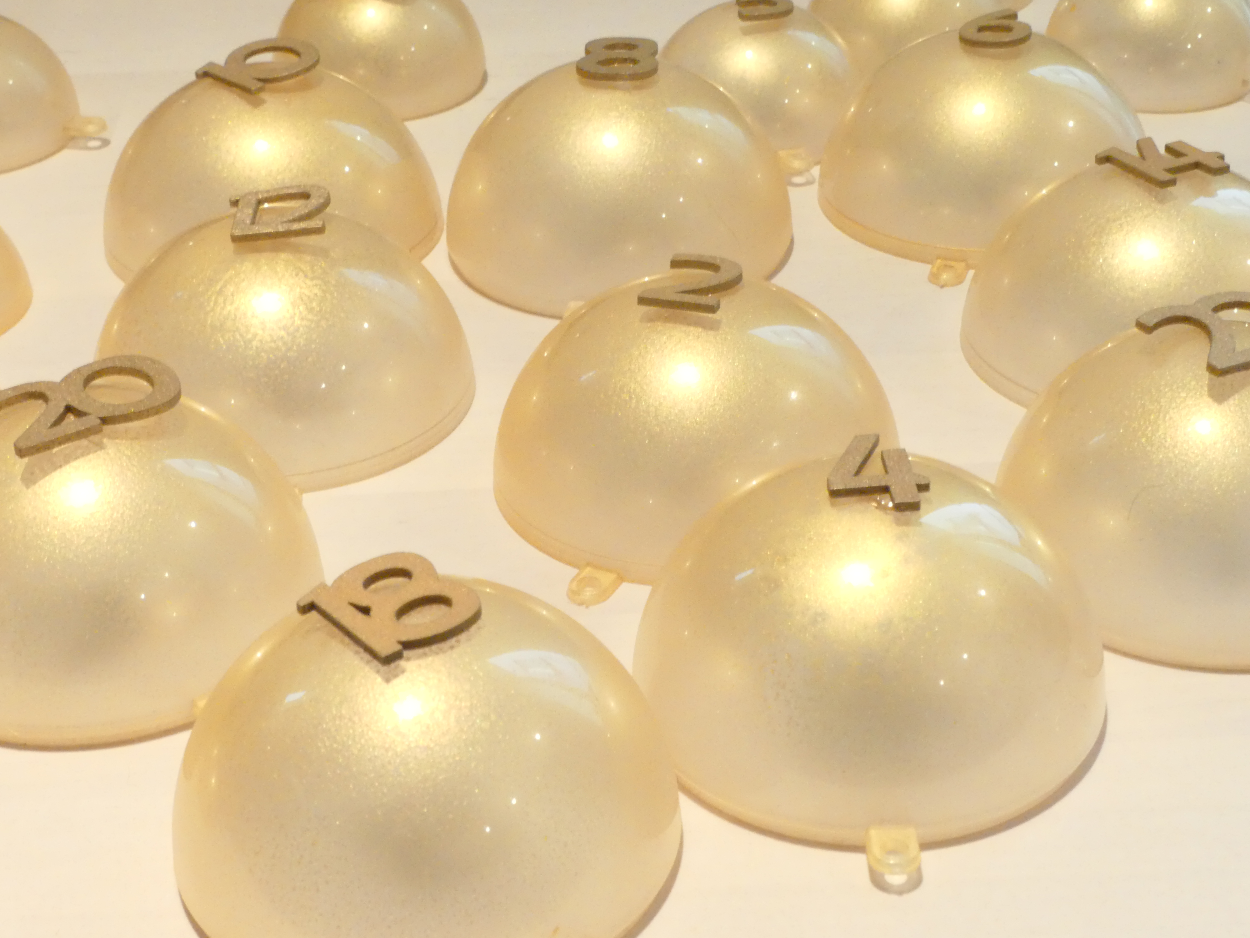Au départ, je pensais faire ce calendrier sur un support rectangulaire mais comme je n’en ai pas trouvé un assez grand, j’ai opté pour une demi-sphère avec une couronne autour.