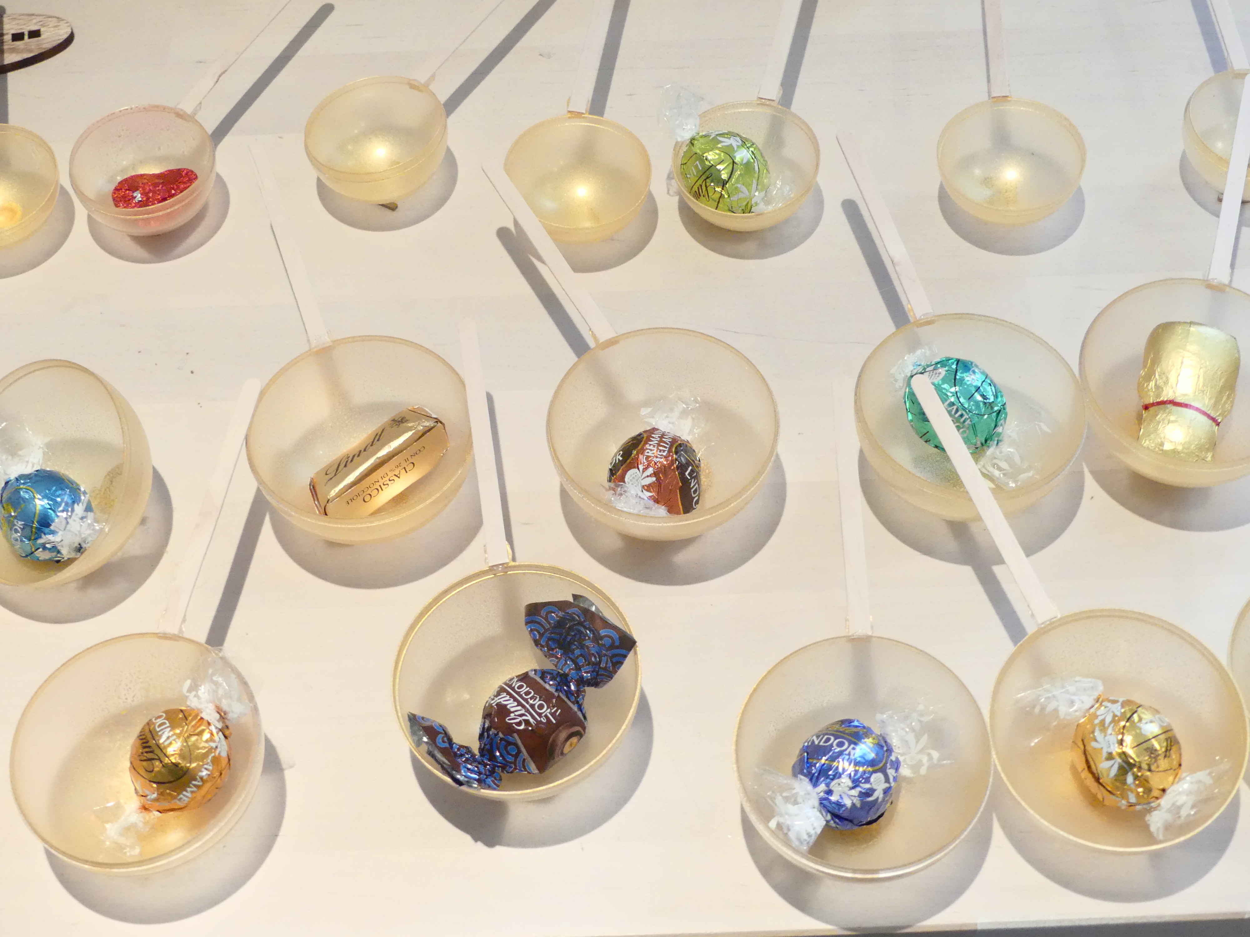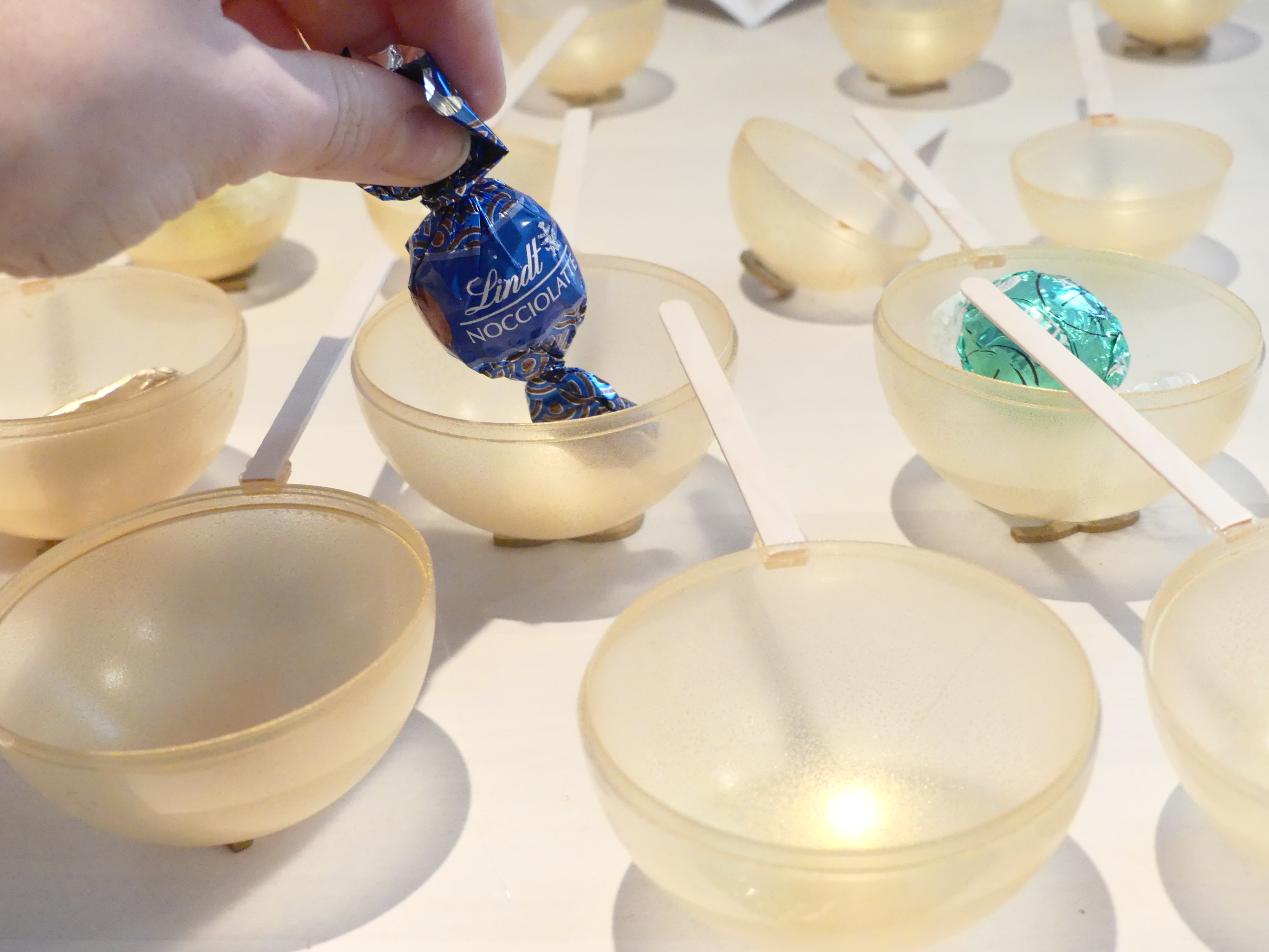 Déposez vos petits cadeaux dans chaque demi-sphère.