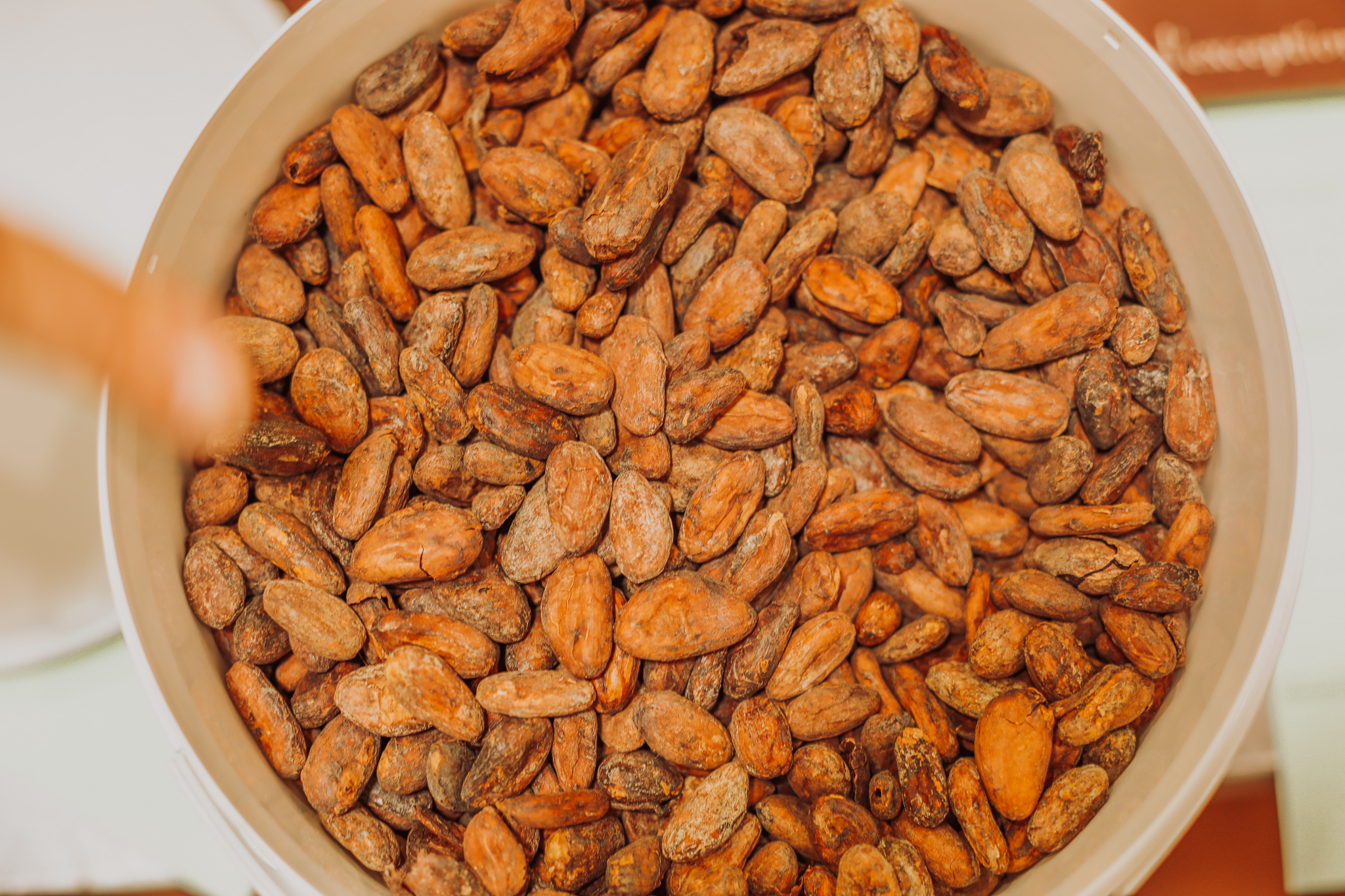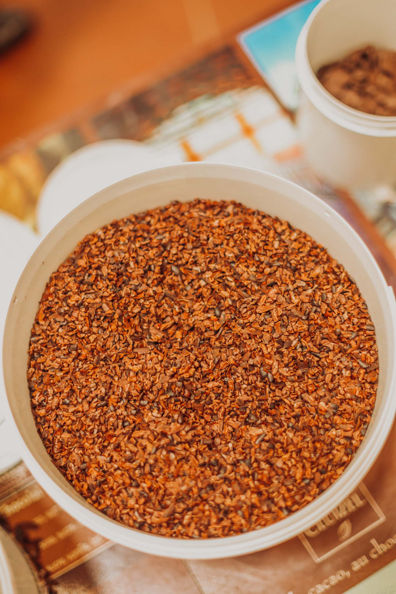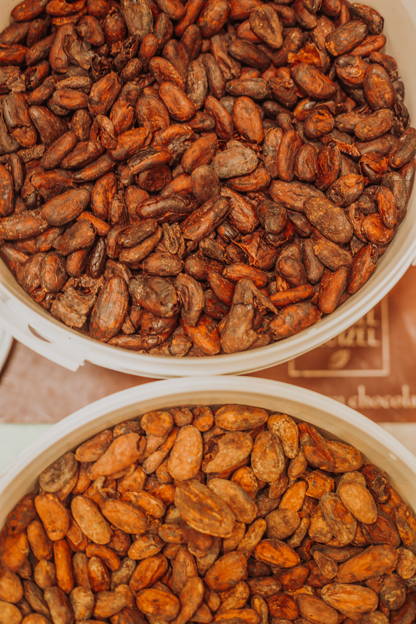 Fèves de cacao torréfiées à la manufacture Cluizel