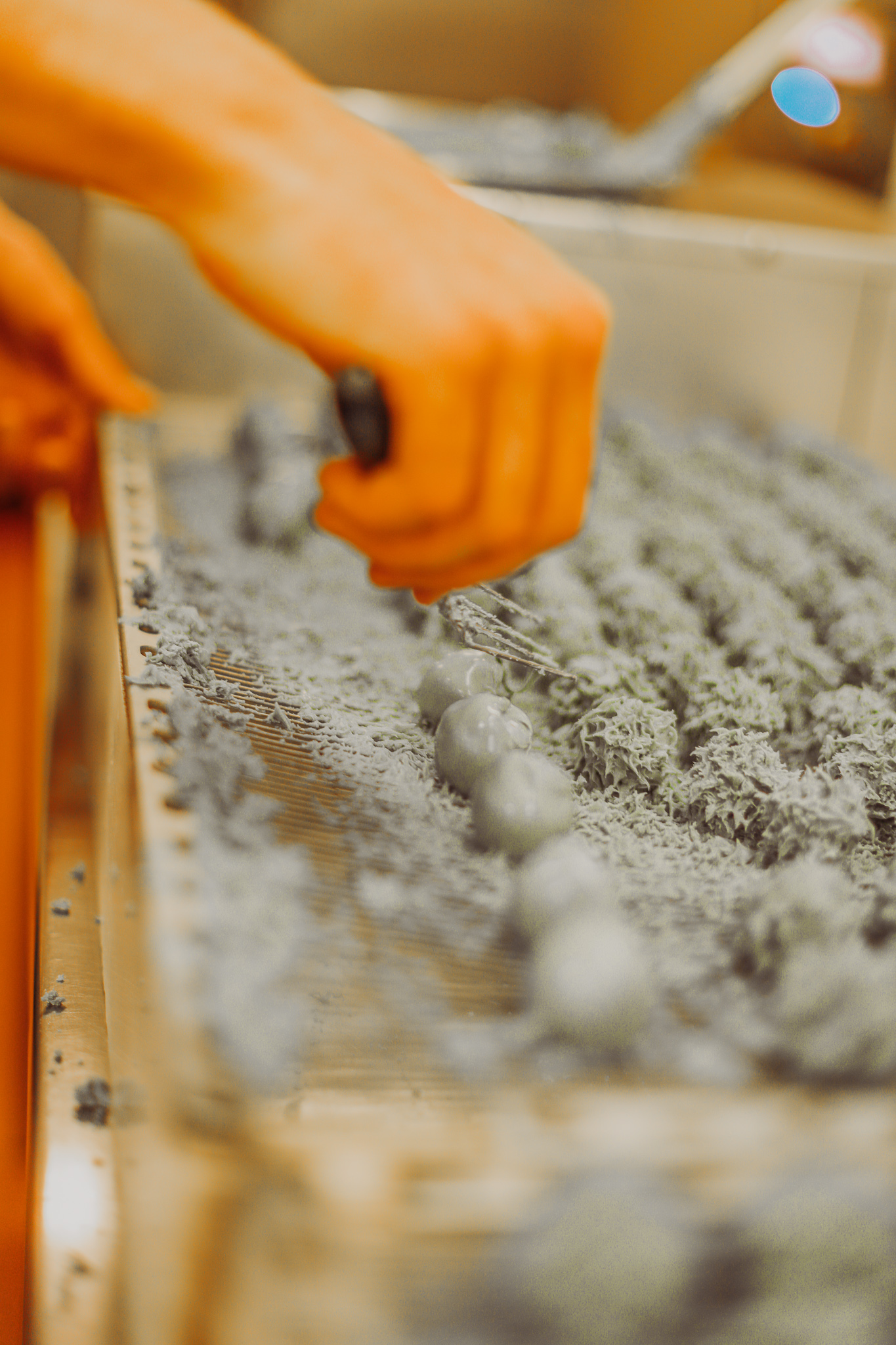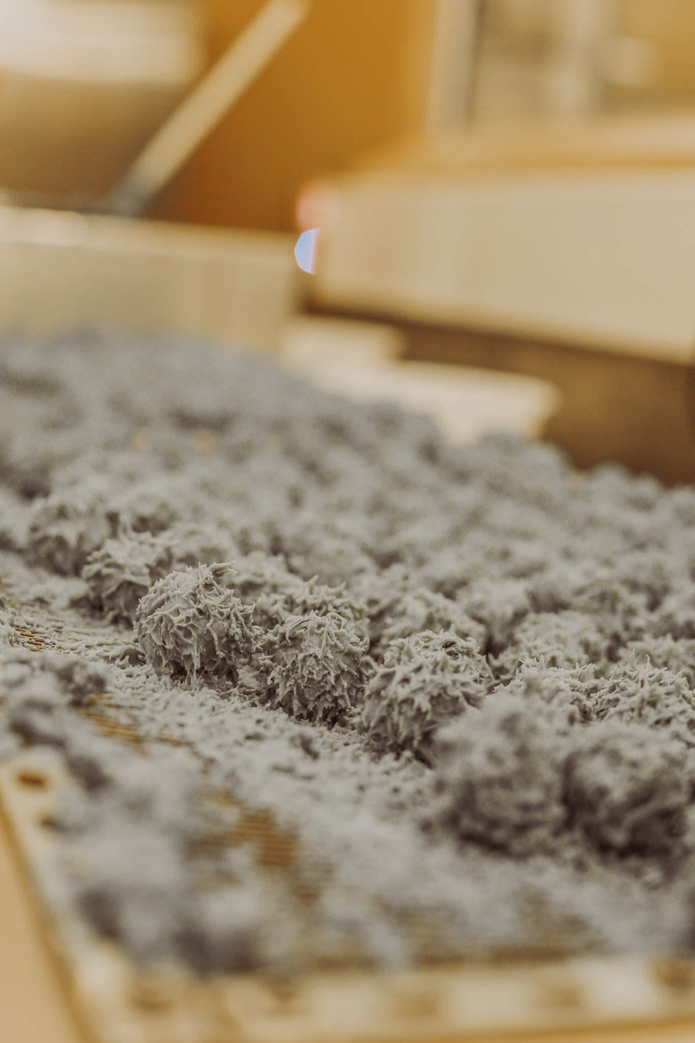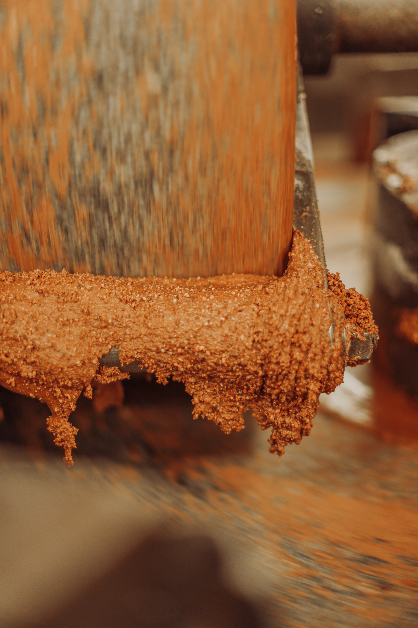 Ce mélange est ensuite broyé avec un meule en pierre (à l’ancienne), afin d’éviter le goût métallique que peut donner un mixeur en métal. Et si vous n’avez jamais goûté ce praliné, il faut absolument y remédier car il a un goût de folie (et non, ne léchez pas votre écran, ça ne sert à rien).