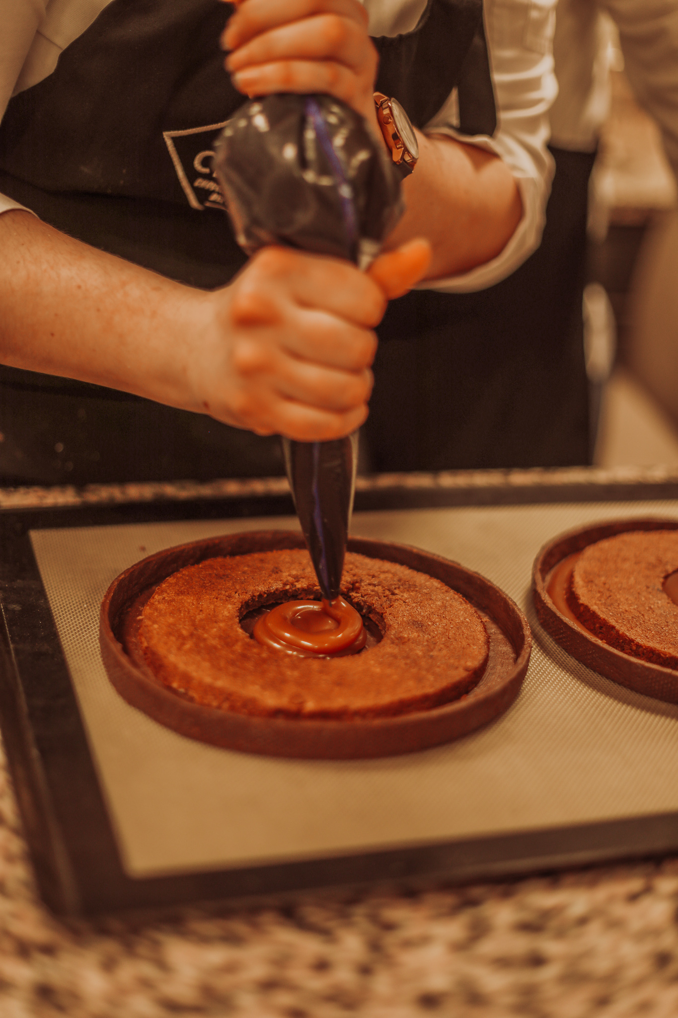 Au programme, la tarte chocolat-caramel et le biscuit de voyage, chacun avec les délicieux produits Michel Cluizel de la gamma Secrets de Pro. Je vous laisse découvrir ça en images.