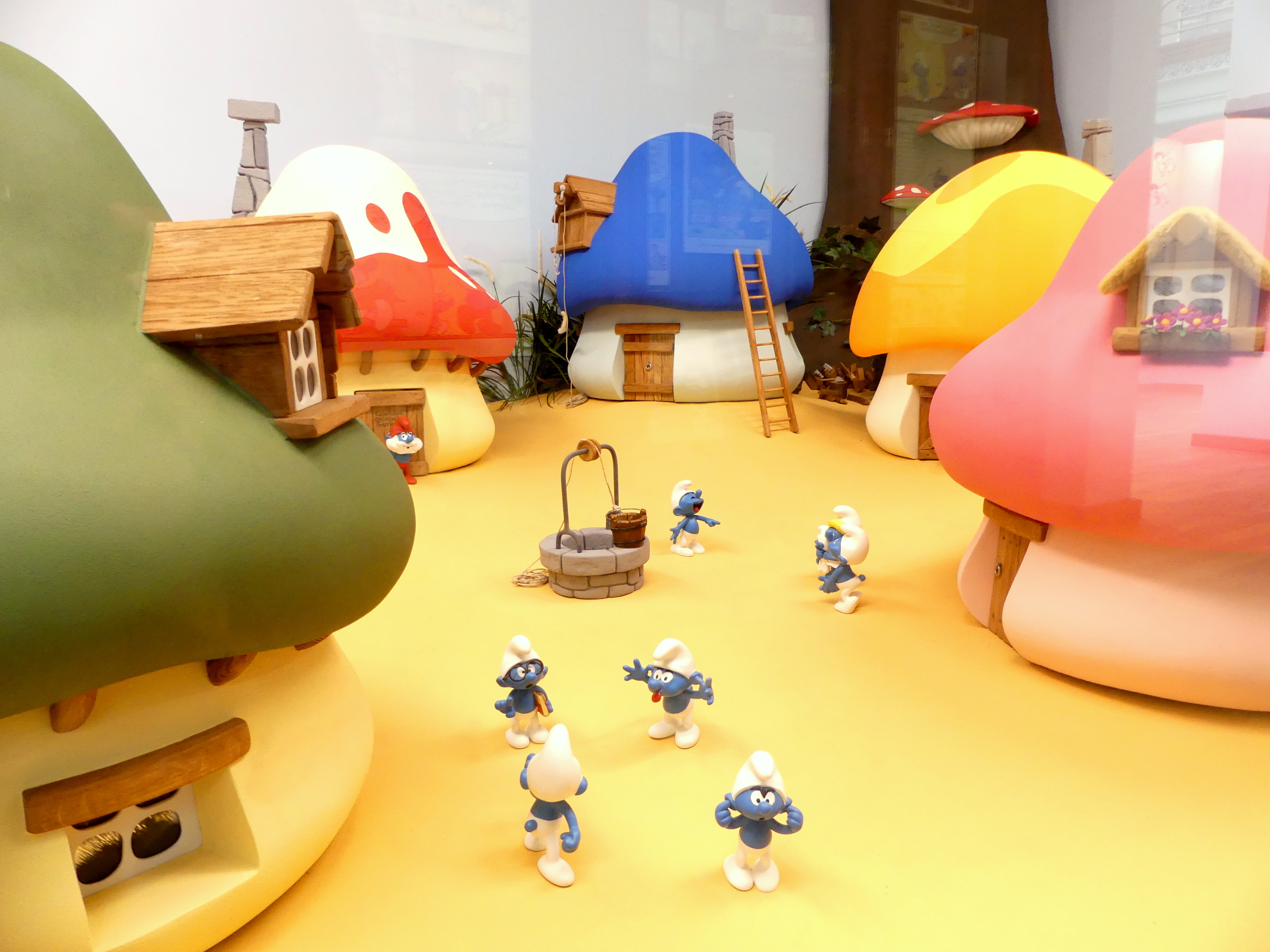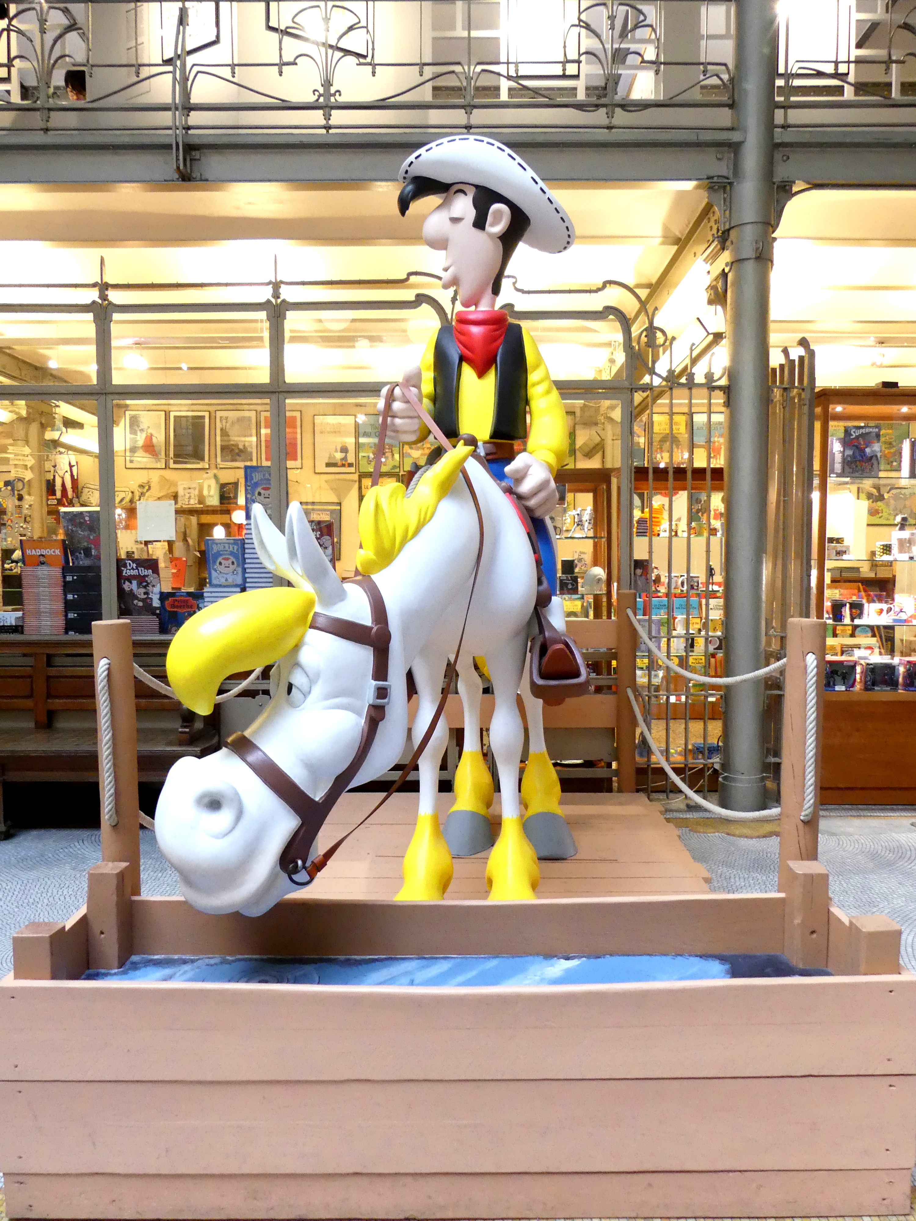 10h30 – Sous une pluie battante (vive la Belgique !), nous nous sommes dirigés vers le musée de la bande dessinée. Au programme, des dessins originaux, des archives, des films… sur les héros plus ou moins connus de la bande-dessinée : Tintin, Lucky-Luke, les Les Schtroumphes, Spirou, Boule & Bill, Tamara,… Ca m’a notamment permis de découvrir de super BDs qui m’étaient jusqu’à lors inconnues. Et la boutique du musée est jsute… WAHOU, avec des étagères remplies d’un nombre incroyable de livres. Ce musée est vraiment à faire, que ce soit avec des enfants ou entre adultes.